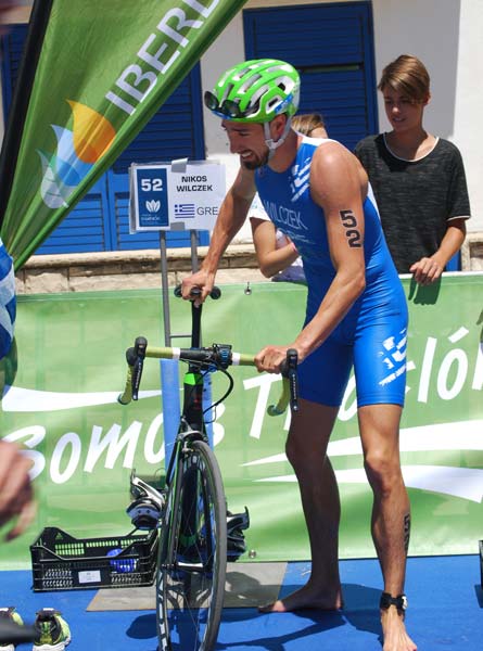 Στους ίδιους αγώνες στους άνδρες, τη χώρα μας εκπροσώπησε ο Νίκος Γουϊλτζεκ ο οποίος όμως στάθηκε άτυχος, καθώς είχες σκασμένο λάστιχο στην πρώτη στροφή της ποδηλασίας και δεν μπόρεσε να ολοκληρώσει τον αγώνα του.
