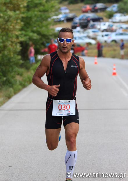 Σύντομα στην ποδηλασία (21,5χλμ) ο Αλυφαντής πήρε την πρωτοπορία με τον Γαρέφη από πίσω του, ο οποίος μάλιστα έπαθε και λάστιχο, αλλά πάραυτα κατάφερε να κρατήσει έναν δυνατό ρυθμό. Αυτοί οι δυο μπήκαν και πρώτοι στην περιοχή αλλαγών πριν το τρέξιμο (4,8χλμ), ενώ λίγο μετά μπήκαν και ο Δανιήλ με τον Σκουλαρίκη που εντωμεταξύ είχε καλύψει αρκετά τη διαφορά. Στο τρέξιμο ο Σκουλαρίκης προσπέρασε γρήγορα τον Δανιήλ και τον Γαρέφη ενώ ο Αλυφαντής είχε ακόμα το προβάδισμα με σημαντική διαφορά. Στα τελευταία μέτρα έγινε μεγάλη μάχη με τον Σκουλαρίκη να φτάνει σε απόσταση αναπνοής τον Αλυφαντή, ο οποίος όμως τελικά είχε περισσότερες δυνάμεις στο σπριντ της τελικής ευθείας και πήρε τη νίκη με συνολικό χρόνο 1:00:51. ο Σκουλαρίκης τερμάτισε αμέσως πίσω του με 1:00:56 ενώ στην τρίτη θέση της γενική κατάταξης τερμάτισε ο Δανιήλ με 1:03:08 που προσπέρασε στο τρέξιμο τον αειθαλή Χρηστο Γαρέφη (1:03:21) ο οποίος τελικά ήταν 4ος γενικής.